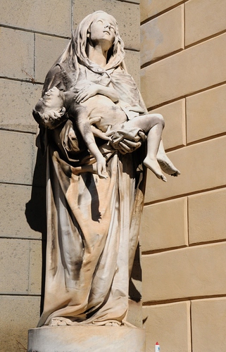 Cimitero di Genova Staglieno. Statua che non fa parte di monumento funebre. La perdita, l'abbandono più doloroso e incolmabile è quello della morte del proprio figlio.