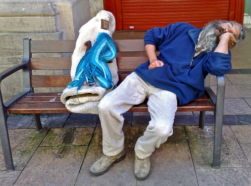 quando ho scattato la foto. Siamo lungo il cammino di Santiago di Compostela e quello che mi interessava era riprendere il simpatico personaggio. Se lo guardi bene lo senti anche russare