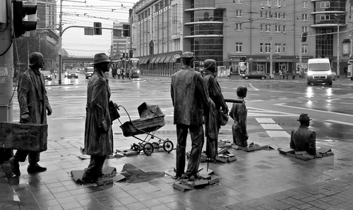 @Marco: visto che ti interessa, ti citerò qualcosa su questo monumento, l'articolo del 2015. Di solito non lo faccio, visto che non posso inserire le descrizioni. "Świdnicka è la strada che parte dall’angolo sud del Rynek ed arriva fino alla ferrovia, un kilometro circa. Poco prima di finire sotto i binari incrocia Piłsudskiego, un’altra grande via che gira a sud del centro della città di là dal canale Fosa Miejska. Se vi fermate all’incrocio guardando verso Rynek vedrete Renoma lo storico centro commerciale di Breslavia – costruito negli anni 30 – alle vostre spalle invece ci sarà Arkady, un altro centro commerciale costruito pochi anni fa. Qui si incrociano varie linee di tram ed autobus, e probabilmente dovrete aspettare un po’ prima che il semaforo diventi verde. A questo incrocio nella notte del 13 dicembre di 10 anni fa 7 statue in bronzo comparvero sul lato destro di Świdnicka, 7 sul lato sinistro. Le 7 sette sul lato sinistro sembra che stiano per attraversare la strada, ma sprofondano sottoterra fino a scomparire, sull’altro lato all’opposto altre sette statue riemergono dal cemento. Il 13 dicembre 1981 Wojciech Jaruzelski generale dell’esercito, Primo Segretario del Partito Operaio Unificato Polacco e capo del governo proclama la legge marziale; Solidarnosc ed altri gruppi sono banditi e i loro leader, tra cui Lech Wałęsa, arrestati durante la notte. Dichiarato il coprifuoco, i militari occupano le strade e gli aeroporti vengono chiusi. Migliaia vengono arrestati, scomparendo nell’ombra come sprofondando sottoterra." Questo luogo è stato scelto da "Newsweek" nel 2011 come uno dei 15 più bei posti in Polonia e la rivista statiunitense "Budget Travel" l'ha inserita nella lista dei posti più incredibili del mondo. |